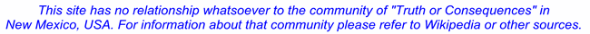 Rechtlicher Hinweis zu Internetseiten anderer Anbieter: Die auf der Webseite www.truthorconsequences.de enthaltenen Links sind teilweise Verweise auf Internetseiten anderer Anbieter. Die Verantwortung für den Inhalt der verlinkten Internetseiten liegt ausschließlich bei dem jeweiligen Webseitenbetreiber. Ich hafte nicht für Schäden, die durch die Benutzung der verlinkten Internetseiten fremder Webseitenbetreiber entstehen. Hinweis zum Datenschutz: Diese Webseite ist bei der Firma 1&1 Internet SE, Eigendorfer Str. 57, D-56410 Montabaur gehostet. Laut Eigenauskunft von 1&1 gilt folgendes: "Tracking und Logging sind standardmäßig aktiviert." Dieses Tracking und Logging dient zur Auswertung mit dem 1&1-Analsyetool "WebAnalytics". Weiter beschreibt 1&1 die Methodik wie folgt: "1&1 speichert keine personenbezogenen Daten von Websitenbesuchern, damit keine Rückschlüsse auf die einzelnen Besucher gezogen werden können. Es werden folgende Daten erhoben: Referrer (zuvor besuchte Webseite) / Angeforderte Webseite oder Datei / Browsertyp und Browserversion / Verwendetes Betriebssystem / Verwendeter Gerätetyp / Uhrzeit des Zugriffs / IP-Adresse in anonymisierter Form (wird nur zur Feststellung des Orts des Zugriffs verwendet)" Persönliche Daten der Nutzer dieser Webseite werden durch mich nicht erhoben. Neben dem von 1&1 standardmässig eingerichteten, oben beschriebenen und von mir nicht beeinflussbaren Tracking und Logging werden von mir keine weitergehenden Daten erhoben und keine weitergehenden Analyseinstrumente (wie z.B. Google Analytics) eingesetzt.