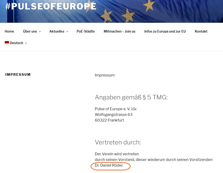 Leider listet "Pulse of Europe" auf seiner Webseite die lokalen Organisatoren nicht auf. Wer will, kann sich ja anhand der lokalen Redner selber auf die Suche machen. In Potsdam z.B. ist ein Herr Volker Gustedt tätig - Eigentümer der PR-Agentur "attento.PR". Es ist wohl nicht überzogen, anzunehmen, dass diese Leute von der EU, so wie sie ist, und so, wie sie von der EU-Kommission vorangetrieben wird, recht direkt profitieren. Da verwundert es auch nicht, wenn im siebten Programmpunkt der "PoE" ("Reformen sind notwendig") nur sehr kurz und wolkig davon geredet wird, dass "die europäische Idee wieder verständlicher und bürgernäher werden" müsse. Was aber schon verwundern kann: In vielen Berichten über "PoE" wird über diese Hintergründe nichts berichtet (obwohl sie doch wirklich nicht schwer recherchierbar sind), sondern es wird im Gegenteil oft von "Graswurzelbewegung" gesprochen, und jener Herr Dr. Röder (der, wie ich einmal vermute, in seinem sonstigen Leben schon sehr auf der Titulierung mit 'Herr Doktor' bestehen wird) mutiert zu "Daniel Röder" von nebenan. So gesehen dann auch nur folgerichtig, dass auf die Fragen, die der Journalist Martin Betzwieser an "PoE" gerichtet hat, wohl bislang keine Antwort eingetroffen ist: https://www.freitag.de/autoren/martin-betzwieser/die-neue-initiative-pulse-of-europe |