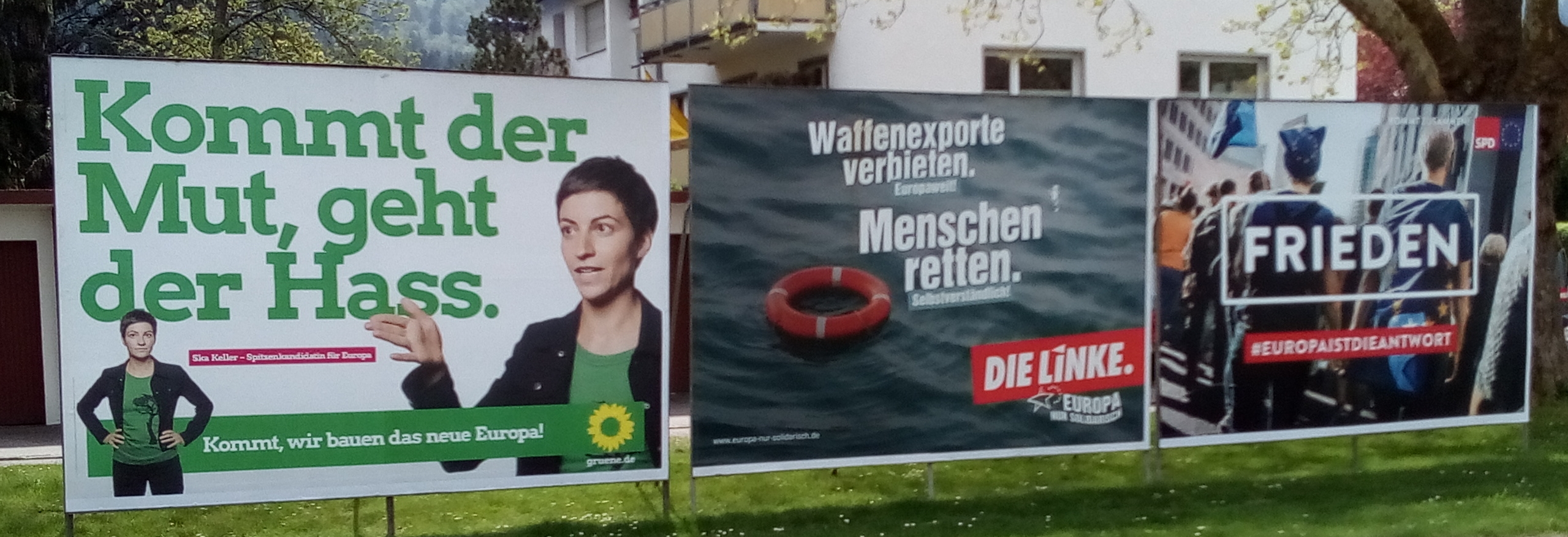 8. Der Zufall hat mir eine Dreifach-Plakatwand vor die Linse gebracht, die das ganze Elend dieser EU-Wahl verdeutlichen kann: