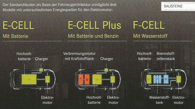 13. Der Wunschpfad der Automobilindustrie Entgegen dem Image, welches gerade Grosskonzerne gerne von sich entwerfen, sind diese bezüglich ihrer Hauptertragsprodukte durchaus keine "Innovationsmotoren". Es ist ja auch verständlich, dass man an Produkten, die gute Erträge erwirtschaften, keine kostenintensiven Änderungen implementieren will. Der US-Automarkt der 1950er bis 1960er Jahre war in dieser Hinsicht sicher "ideal", denn jährlich vorgenommene geringe Änderungen an Aussen- und Innendesign reichten, um technisch fast unveränderte Fahrzeuge teilweise jahrzehntelang abzusetzen. Dabei war bei den damaligen "grossen 3" (GM, Ford, Chrysler) sogar das technische Grundkonzept der Fahrzeuge meist gleich: Leiterrahmen, V8-Frontmotor, angetriebene Starrachse hinten, Trommelbremsen. Dem widerspricht nicht, dass man damals wie heute immer wieder einmal auch technisch anspruchsvollere Fahrzeuge, sozusagen als "Lockvogel", anbietet. Die müssen sich, bei ihren geringen Stückzahlen, auch garnicht unbedingt "rechnen". Technisch war die Industrie schon lange auf alle wesentlichen Konzepte für "e-Antrieb" vorbereitet, wie diese Grafik (wiederum von 2009) zeigt: