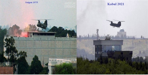 3. "Kabul 2021" wurde dann tatsächlich so etwas wie eine Neuauflage von "Saigon 1975", nur diesmal in einem atemberaubenden Tempo neu inszeniert. Und am Ende produzierte es sogar gespenstisch ähnliche Bilder von US-Helikoptern, die eigenes und "alliiertes" Personal in letzter Stunde ausfliegen sollen: