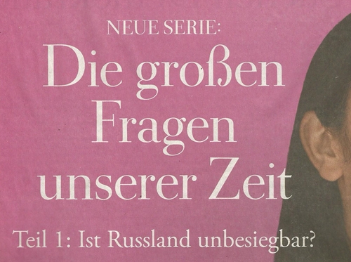 Im ersten Teil widmet sich also Michael Thumann *1 der drängenden Frage, ob Russland, wie es seiner Ansicht nach die aktuelle Selbstdarstellung dort propagiere, unbesiegbar sei, oder doch nicht.